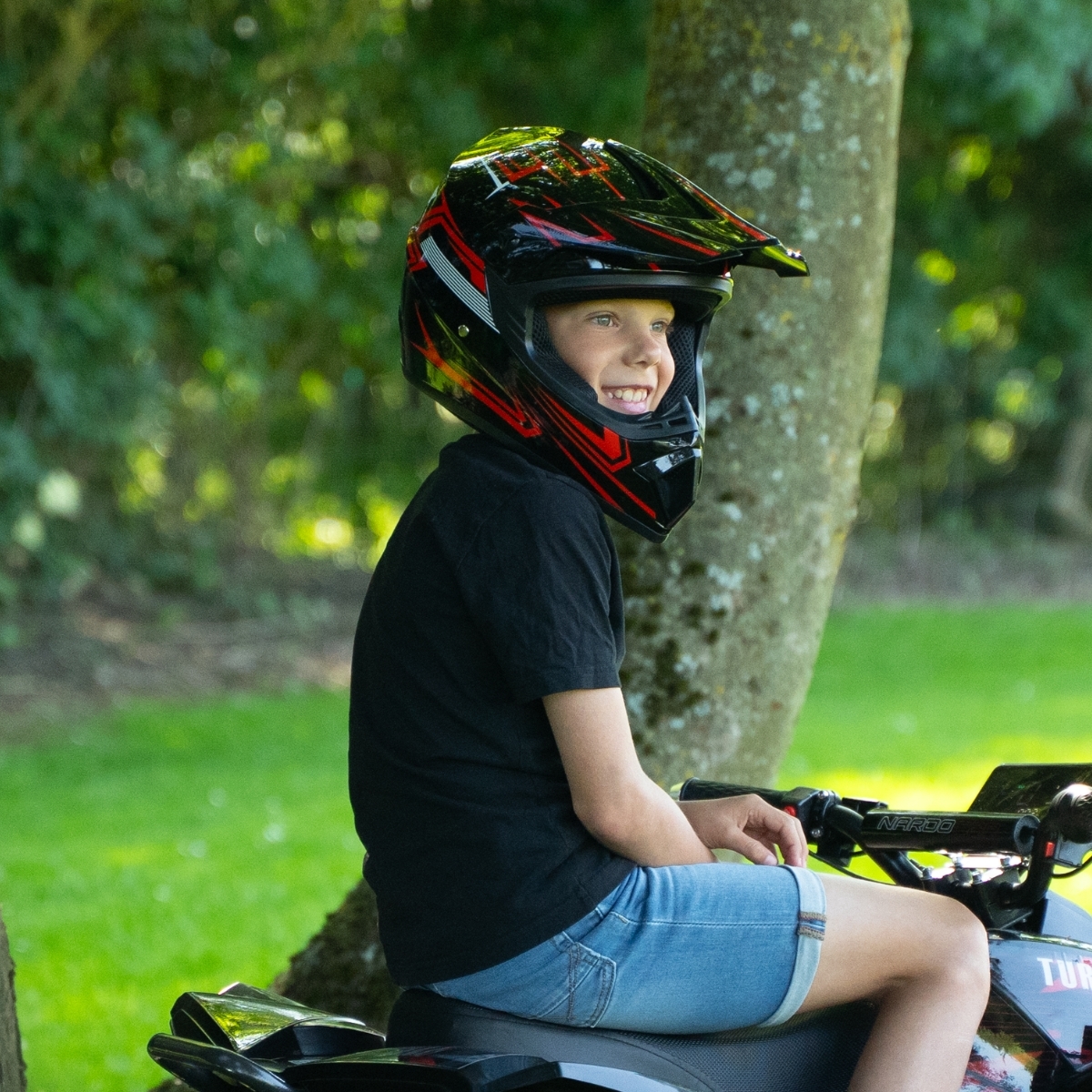 Ge ditt barn en säker och bekväm körupplevelse med denna specialdesignade barnhjälm. Med en lätt och robust design är hjälmen idealisk för allt från el-ATV till minicrossar och andra fartfyllda äventyr.