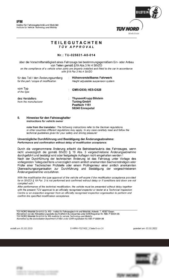 Bilstein TÜV Godkännande
