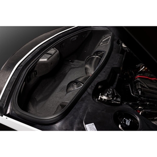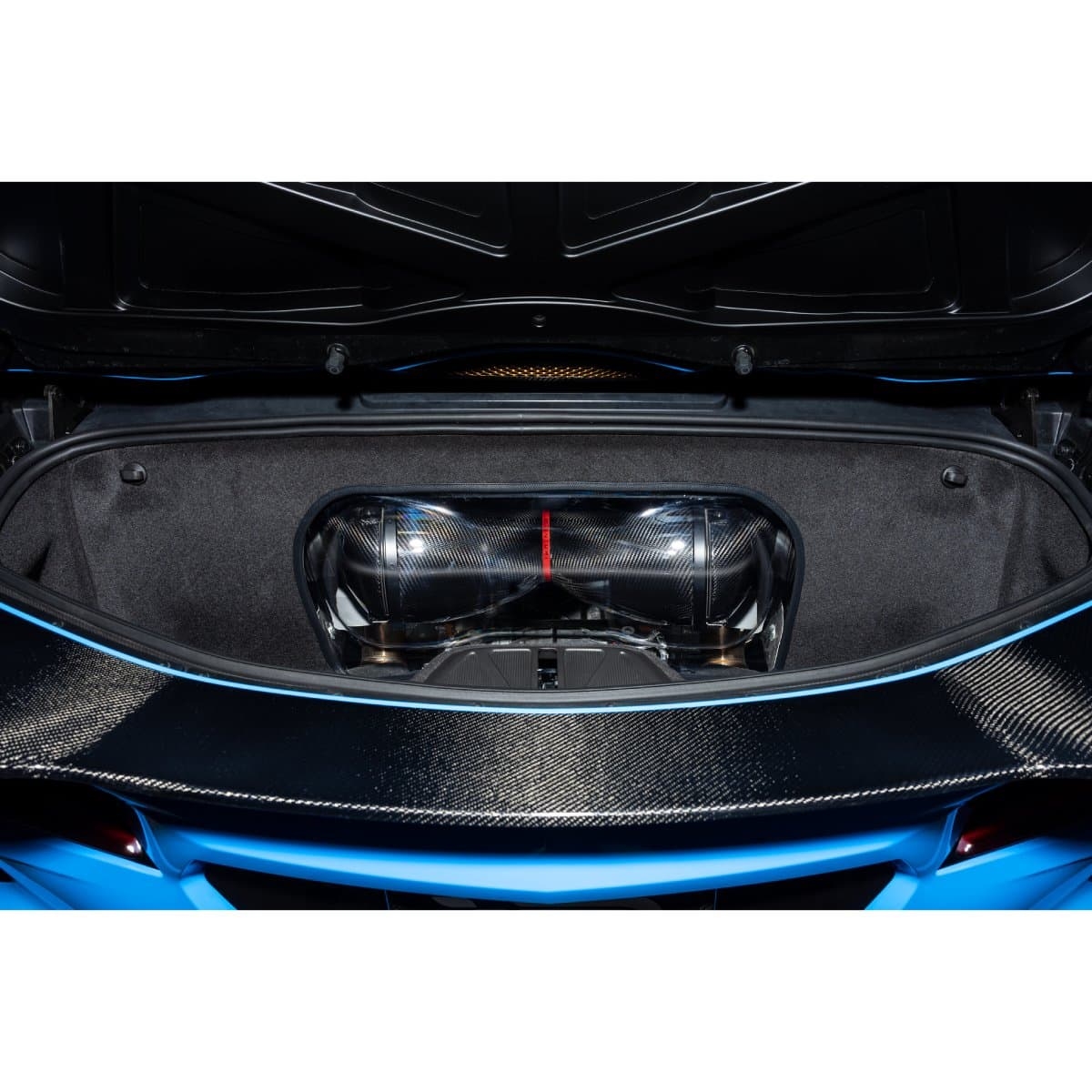 Att designa ett insug med stor volym och jämn luftflöde till motorn var inte möjligt med det begränsade utrymmet, delvis på grund av den originala bagagerumsplåten, så vi designade om den för att rymma vårt insug. Vi passade även på att visa upp kolfibern och gjorde plåten i klar polykarbonat. Detta ger ett fönster för att se insuget när bagagerumslocket är öppet – en branschens första på denna plattform.
