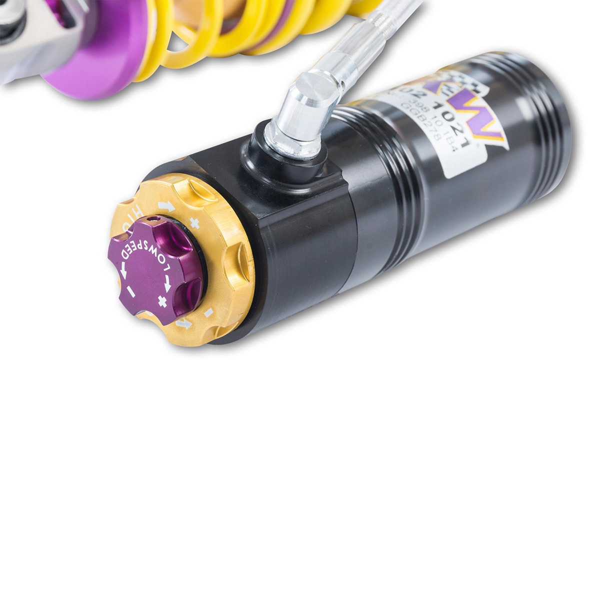Med KW V4 coilover-kitet med sina coilover-stag i rostfritt stål ger du din superbil de nödvändiga reserverna för att ytterligare öka kördynamiken. De trevägs justerbara high-performance-stötdämparna med deras oberoende justering av återfjädring och låghastighets- samt höghastighetskomprimeringsdämpning bygger på den framgångsrika racingtekniken från flerfaldiga totalvinnare av ADAC Zurich 24-timmars Nürburgring, och beroende på fordonsspecifik design har de även aluminiumtoppfästen.
