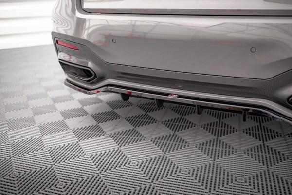 Maxton Central Rear Splitter (With Vertical Bars) BMW 7 M-Pack G11 Facelift - Gloss Black