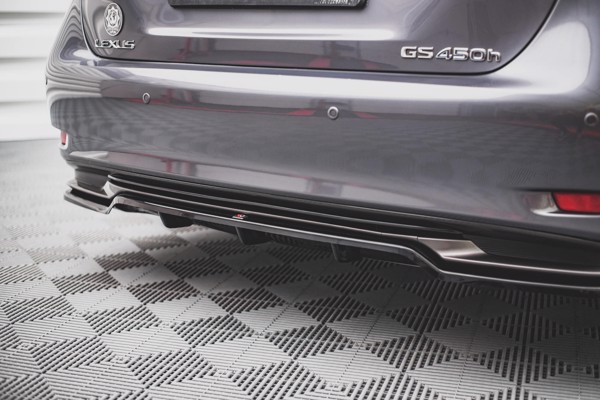 The central rear splitter with a diffuser, designed to be mounted in the Lexus GS F Sport Hybrid Mk4 (L10) model, this is a modern structure, which is entirely made of ABS. ABS material is a flexible and durable structure, which is marked with the TUV MATERIALGUTACHTEN certificate, a certificate that draws attention to the high quality of products. ABS is eagerly used for the production of basic elements of vehicle equipment and parts of optical tuning due to its properties, increased resistance to adverse weather conditions in the form of moisture or extremely low temperatures.