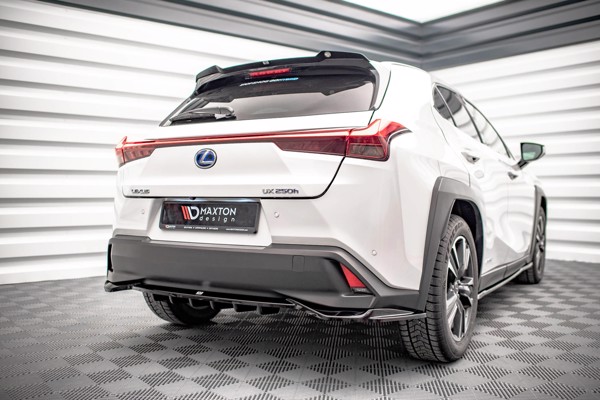How does this Lexus UX Mk1 central rear splitters stand out? - it’s available in a number of surface looks - it’s moisture-resistant - it has a UV-repelling layer - requires no painting - it’s TUV MATERIALGUTACHTEN certified