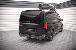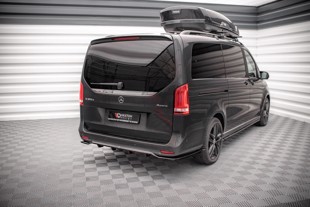 The Mercedes-Benz V-Class AMG-Line W447 Facelift central rear splitter shows an aesthetic form and will constitute a striking addition to your machine. The installation of this product will cause visual lowering of the bodywork which contributes to that slick modern racing look. This element is the most presentable alongside side skirts and a front splitter. It comes in carbon, gloss, or textures surface structure varieties. You an also purchase a red or white decorative stripe to further personalize your tuning.