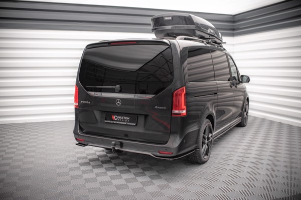 How does this Mercedes-Benz V-Class AMG-Line W447 Facelift central rear splitters stand out? - it’s available in a number of surface looks - it’s moisture-resistant - it has a UV-repelling layer - requires no painting - it’s TUV MATERIALGUTACHTEN certified