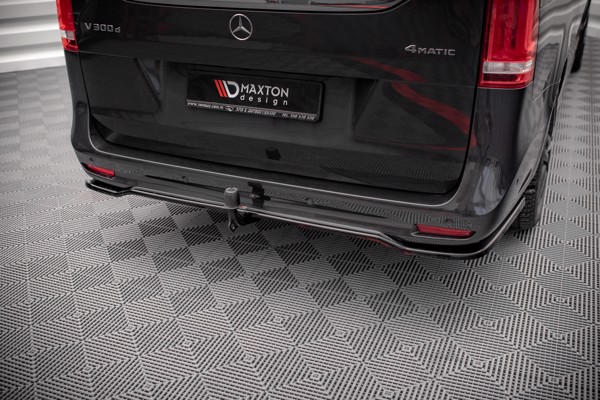 Maxton Central Rear Splitter (With Vertical Bars) Mercedes-Benz V-Class Amg-Line W447 Facelift - Gloss Black