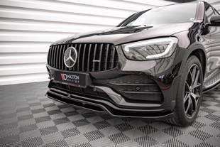 This front splitter for Mercedes-Benz GLC Coupe AMG-Line C253 Facelift   is a multi-purpose and advanced tuning element that lowers the perceived position of the bodywork, which gives the car a slick racing look. The splitter will bring the silhouette of this model forth and make driving even more enjoyable an experience. The front splitter is also a component responsible for a boost to aerodynamic. This is due to the increase in the pressure exerted on the front axle by the air flowing under the bumper which results in improved stability and traction. This front splitter by Maxton Design is available in three sorts of surface finish: textured, gloss, and carbon which gives you an opportunity to make your tuning more individual.