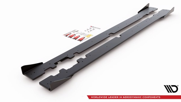 Maxton Racing Durability Side Skirts Diffusers + Flaps Mercedes-Amg C43 Coupe C205 - Black-Red + Gloss Flaps