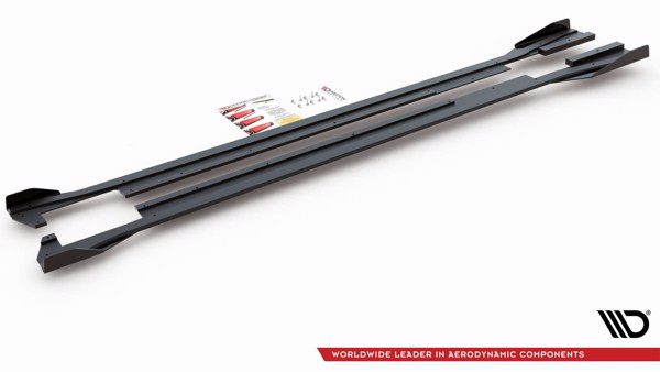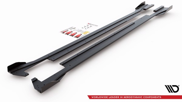 Maxton Racing Durability Side Skirts Diffusers + Flaps Volkswagen Arteon R-Line - Black + Gloss Flaps