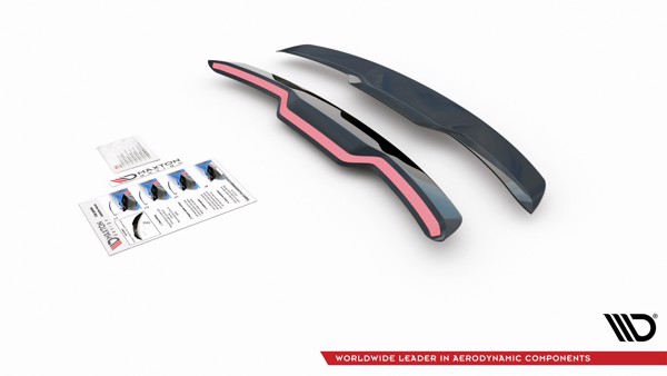 Product details: - it’s ABS-made - the spoiler cap is accessible in 3 types of surface structure: textured, gloss, carbon - only one side (the outer side) is covered with the surface finish - the inner side of the cap is matte - the entirety of the inner side of the cap is matte - every cap has double-sided acrylic 3M tape for mounting fastened along the inner side's whole length - the gloss and carbon structures are secured with a protective film - the element is coated with a UV-repelling layer - it does not require painting (If you decide to paint your product you have to lay a primer layer before applying the paint job)