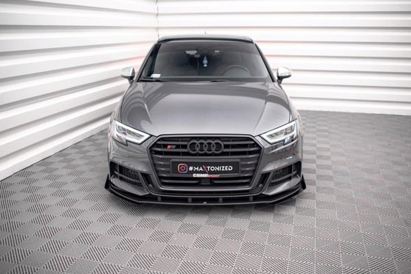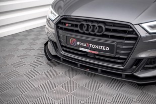 Maxton Street Pro Front Splitter V.1 + Flaps Audi S3 / A3 S-Line Sportback 8V Facelift - Black + Gloss Flaps