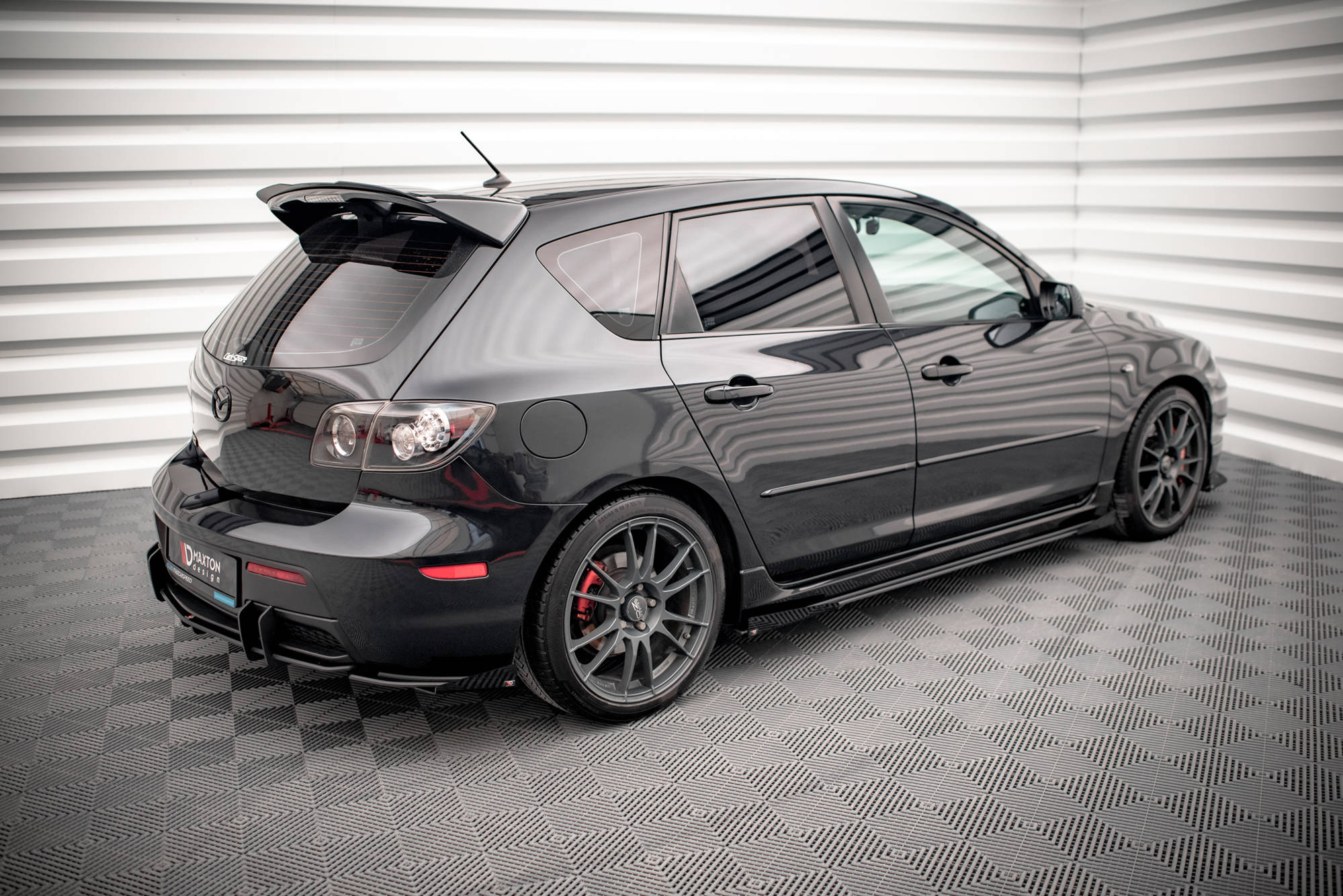 Maxton Street Pro Side Skirts Diffusers + Flaps Mazda 3 Mps Mk1 - Black-Red + Gloss Flaps