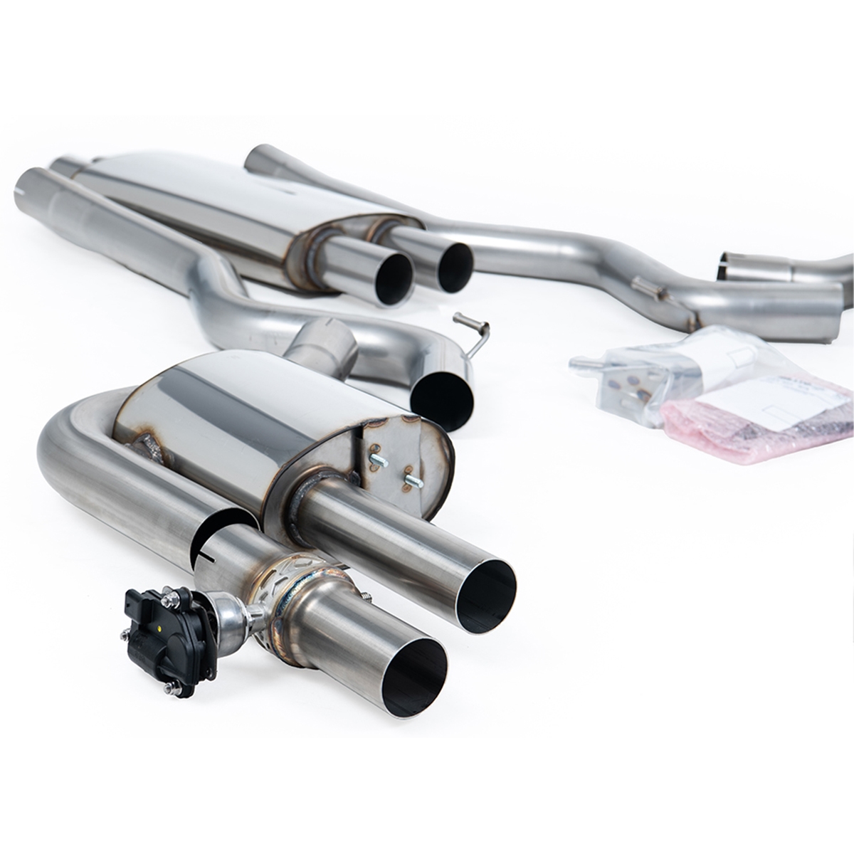 Dual Quad Outlet with Active Valves Resonated with GT-100 Polished Trims - Requires OE GT 5.0 Rear Diffuser