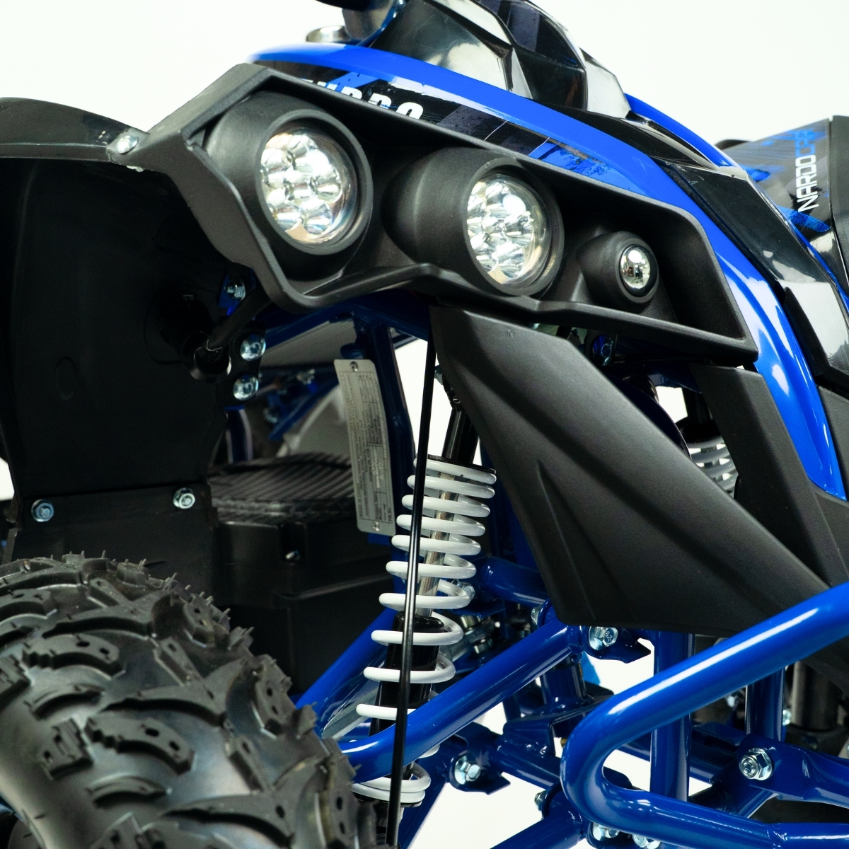 ATV:n är en fartsmaskin som väger 55 kg och når höga hastigheter för en kraftfull el-ATV-upplevelse. ATV:n är konstruerad med en metallram och ett dubbelbromssystem med skivbromsar som säkerställer stabil och funktionell bromsning under alla terräng- och väderförhållanden. En kvalitet du aldrig tidigare har upplevt i en elektrisk ATV.