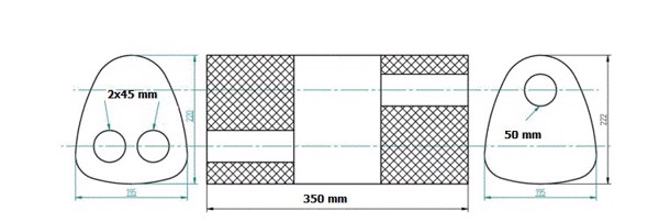 Inlet/outlet diameter - 50 mm / 2x45 mm