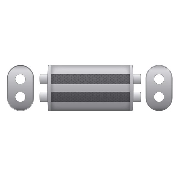 Universal passage silencer made of stainless steel.