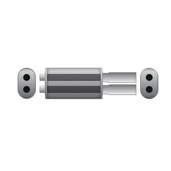 Universal passage silencer made of stainless steel.