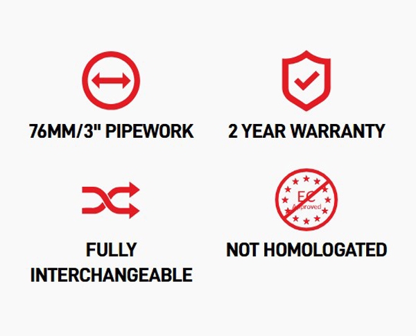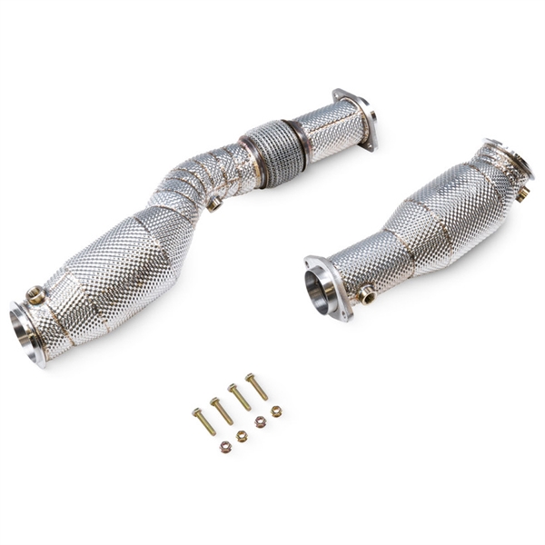 Välj den dubbla 200-celliga sportkatalysatorn för betydligt förbättrad flöde jämfört med OEM eller välj de obegränsade de-katarna för maximal prestanda (endast för motorsportbruk). Dessutom minskas värmeuppbyggnaden och motorrumstemperaturerna avsevärt med vår värmeskärmsteknologi, innesluten i ett ruggat rostfritt ståltermiskt yttre lager, svetsat på plats.
