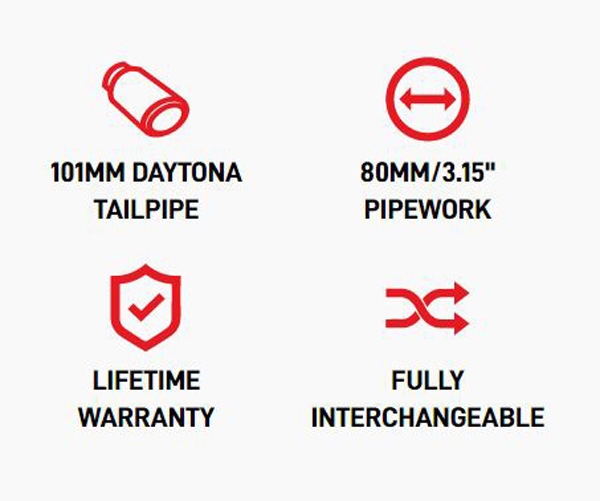 • 101 mm Daytona avgasrör