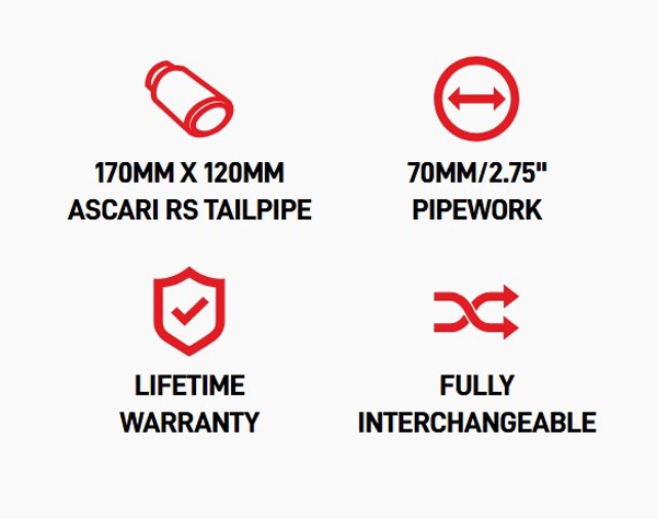 • 170mm x 120mm Ascari RS Avgasrör