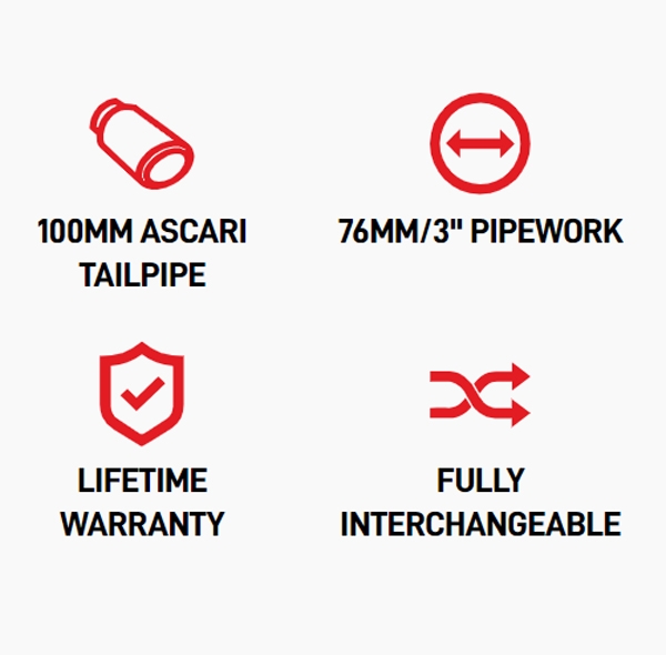 När systemet är installerat ger det en mätbar viktminskning jämfört med OE-systemet – en förbättring som inte bör underskattas. Viktminskning är en avgörande faktor för prestanda. Där det är relevant är Scorpion-systemen utrustade med akustiskt utvecklade ljuddämpare för att säkerställa minimal drone genom hela varvtalsregistret.
