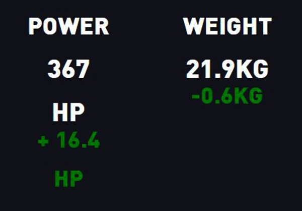 Effektskillnad 350,6 HK 367 HK +16,4 HK
