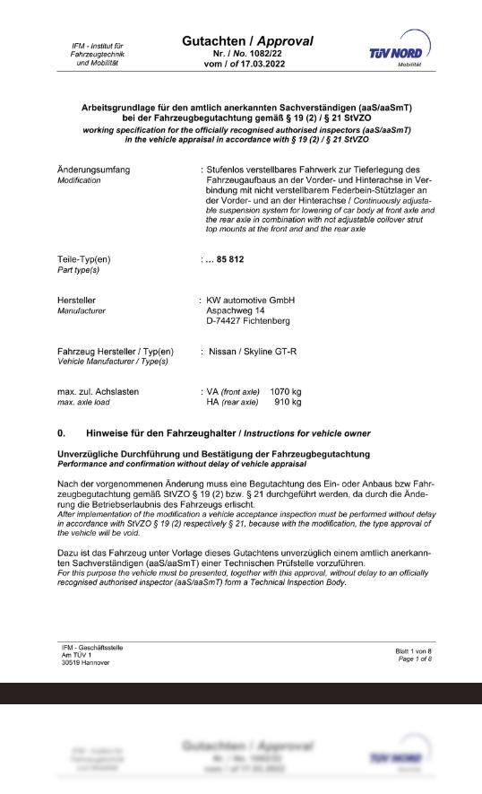 Normalt följer en förenklad TÜV-godkännande med när du beställer coilovers, sänkningssatser eller sportunderstell.