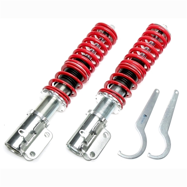 Denna TA Technix Deep Version Coilover till Seat Inca 9K är perfekt för dig, som främst vill få sänkt bilen för utseendets skull och inte tar lika hårt på körupplevelse och komfort. En av de största styrkorna för detta kit är helt klart priset, och om du har en tight budget att hålla, kan dessa coilovers därför vara ett utmärkt alternativ när du ska sänka din Seat Inca 9K. Deep Version Coilover från TA-Technix är dock endast TÜV godkänd för 65mm, men kan sänkas med hela 120mm. Om TA Technix TA Technix är en tysk tuningspecialist, med bas i Berlin, som har mer än 10 års erfarenhet från tuningbranschen. TA Technix är särskilt kända för deras låga priser och den sportiga stilen, de kan tillföra till varje bil. Sortimentet från TA är väldigt stort och innehåller, förutom Deep Version Coilover – som den du tittar på nu till Seat Inca 9K – även stabilisatorstag, sport suspension, fjäderbenstag, sänkningsfjädrar och vanliga coilover kit. Fördelar med denna TA Technix Deep Coilover: - Särskilt överkomligt pris - Alla deep versioner är TÜV-godkända – se ovan, för detaljer om din Seat Inca 9K